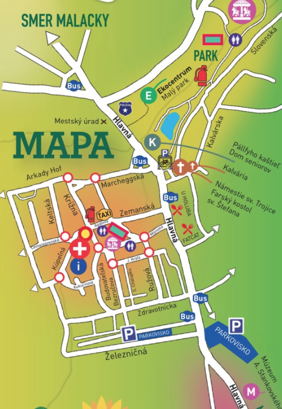 - Parkovisko č. 1: areál bývalej konzervárne pri Kostole sv. Šebastiána a Rócha. Vjazd z Hlavnej ulice, výjazd na Mariánsku ulicu.Oproti minulým rokom bude počet parkovacích miest dvojnásobný.