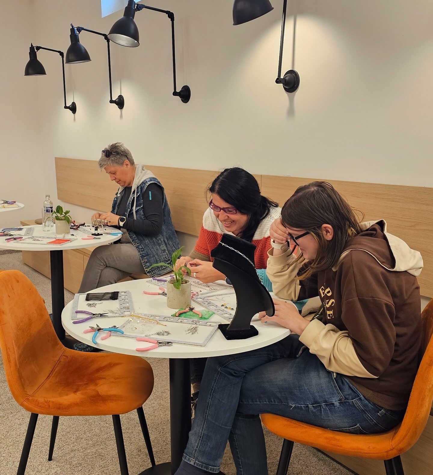 V KC JÁNY sa pravidelne koná tvorivý šperkársky workshop s Emou Mračnovou, ktorá pochádza z Moravského Svätého Jána. Ema je umelecká duša s citom pre detail a už roky sa venuje ručnej výrobe originálnych šperkov.