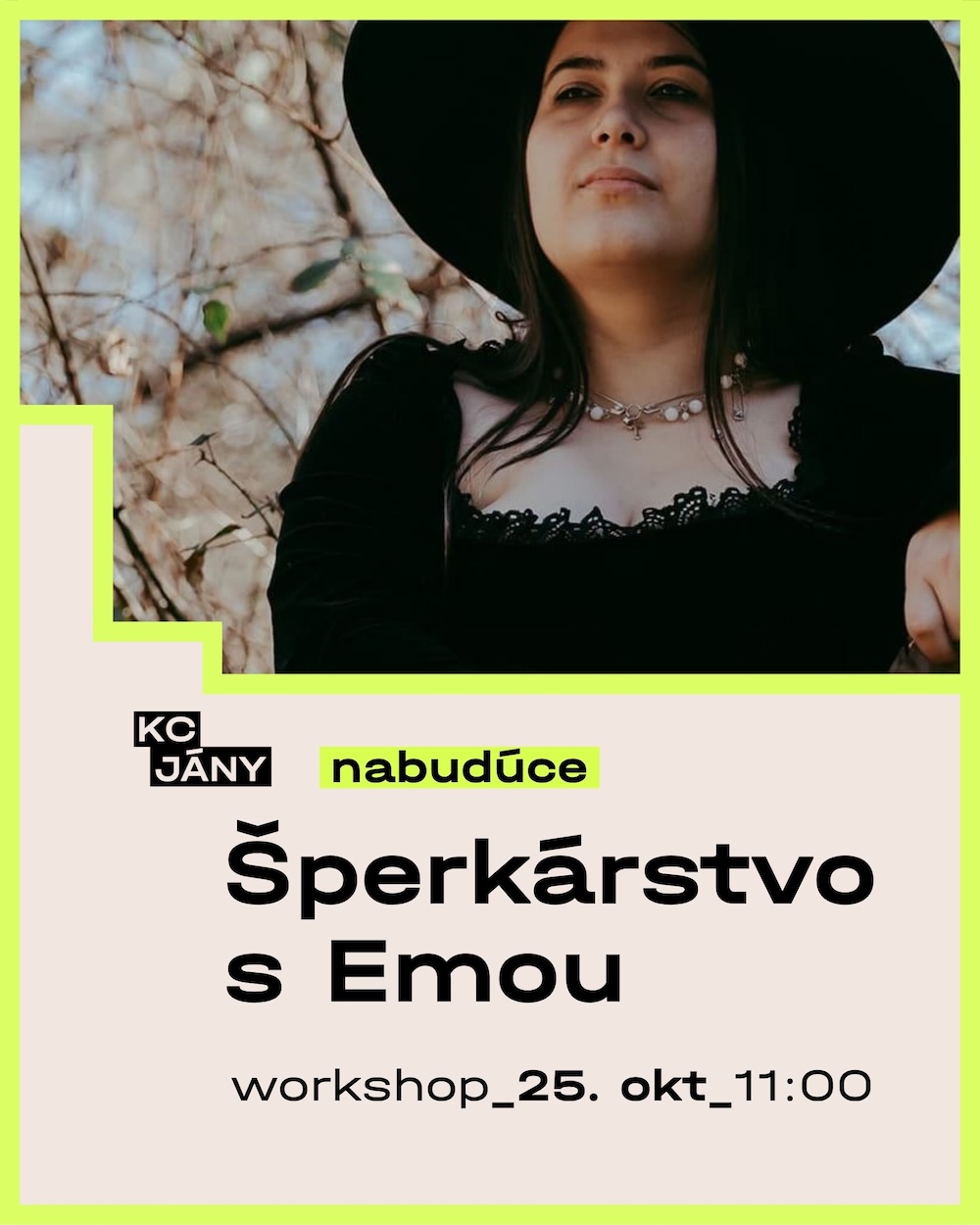 V KC JÁNY sa pravidelne koná tvorivý šperkársky workshop s Emou Mračnovou, ktorá pochádza z Moravského Svätého Jána. Ema je umelecká duša s citom pre detail a už roky sa venuje ručnej výrobe originálnych šperkov.