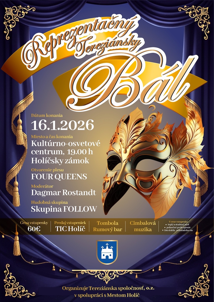 V Holíči sa 16. januára 2026 uskutoční Reprezentačný Tereziánsky bál. Podujatie sa začne o 19:00 hod. v priestoroch Kultúrno-osvetového centra na Holíčskom zámku.