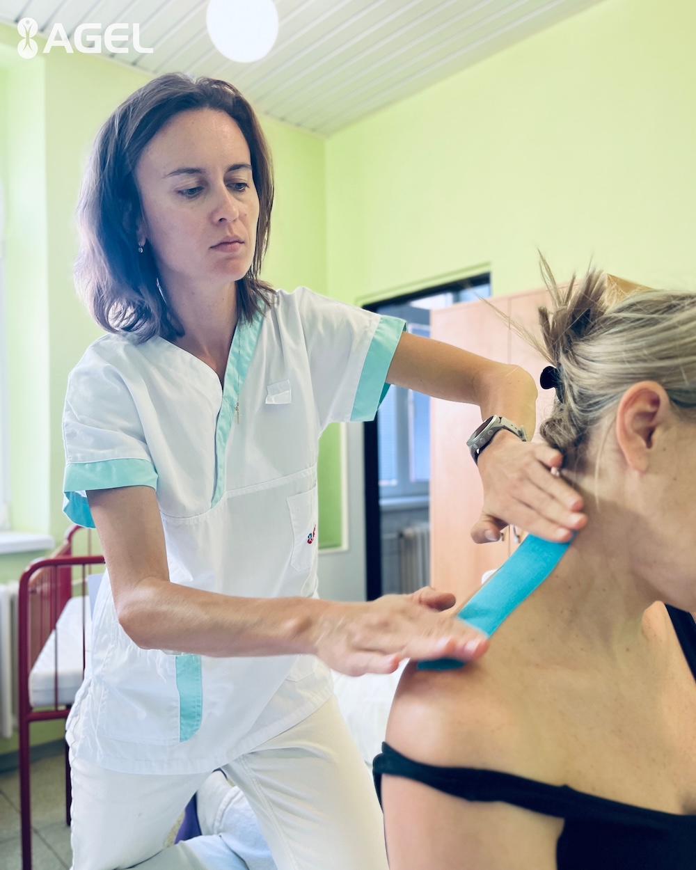 „Tejpovanie pomáha uvoľniť napätie v svaloch, zmierniť bolesti chrbta, bedier či podbruška, podporiť správne držanie tela a zlepšiť cirkuláciu krvi aj lymfy,“ vysvetľuje hlavná fyzioterapeutka Fakultnej nemocnice AGEL Skalica Mgr. Hana Richterová.