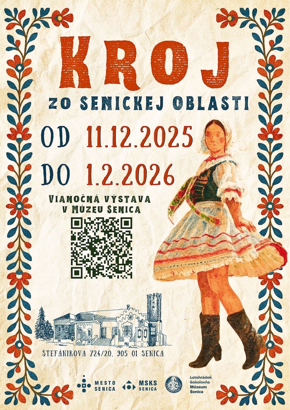 Výstava Kroj zo Senickej oblasti predstaví návštevníkom najvýraznejšiu podobu tradičného odevu na Záhorí so zameraním na dediny Prietrž, Hlboké, Čáčov, Kunov, Sotina, Rovensko, Rybky, Rohov a Častkov. Uskutoční sa v termíne od 11. decembra do 1. februára 2026 v Múzeu Senica, ktoré o tom informovalo na svojom webe.