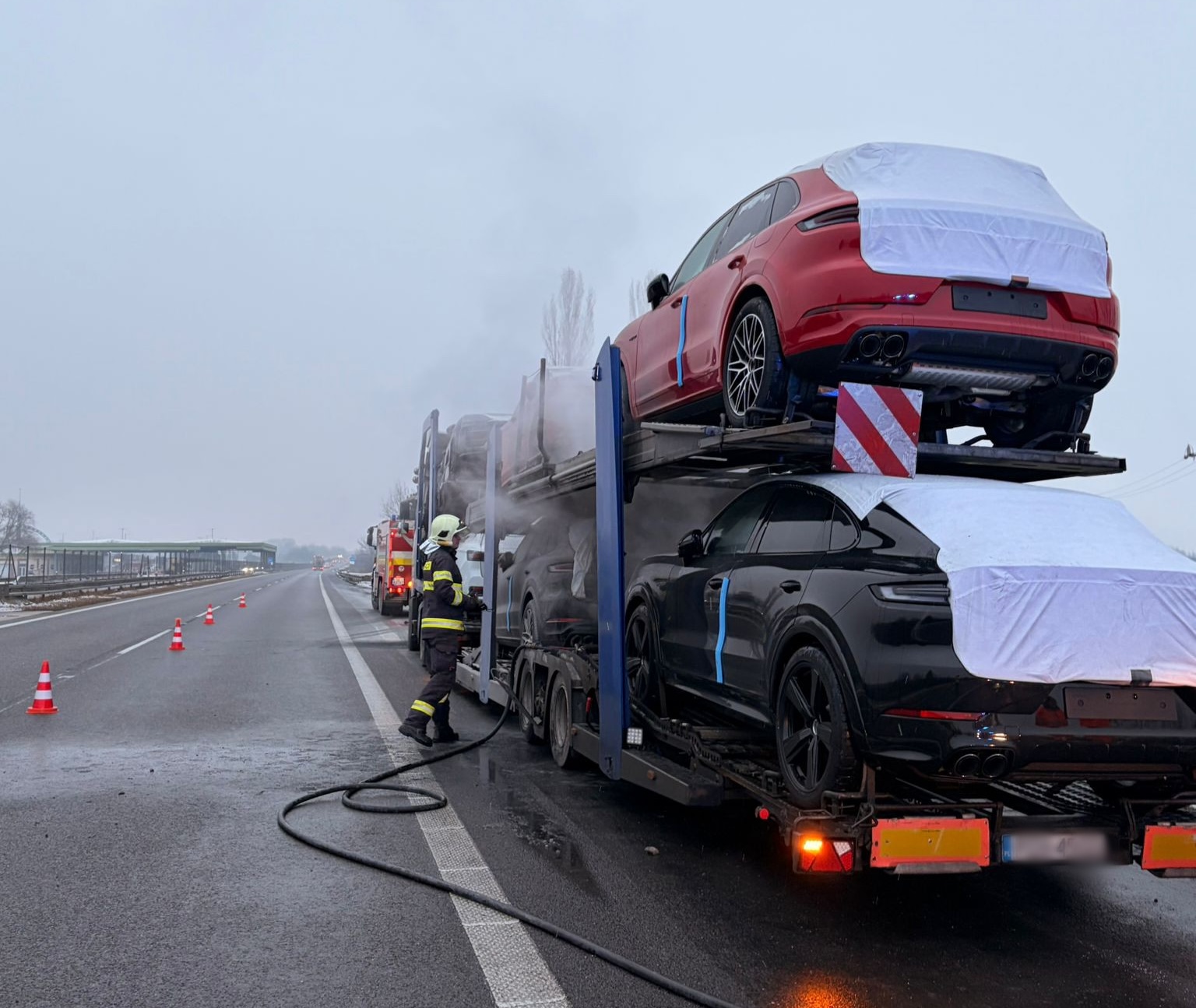 „Dopravní policajti Krajského riaditeľstva Policajného zboru v Bratislave aktuálne vykonávajú potrebné úkony spojené s požiarom motorového vozidla, ktorý sa stal na diaľnici D2 smer Česká republika, kilometer 0,7 za úrovňou obce Kúty, pred hraničným priechodom Brodské,“ priblížili policajti.