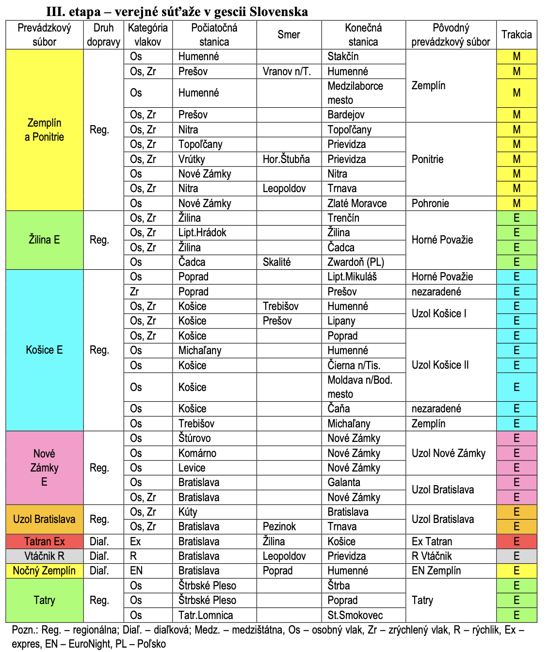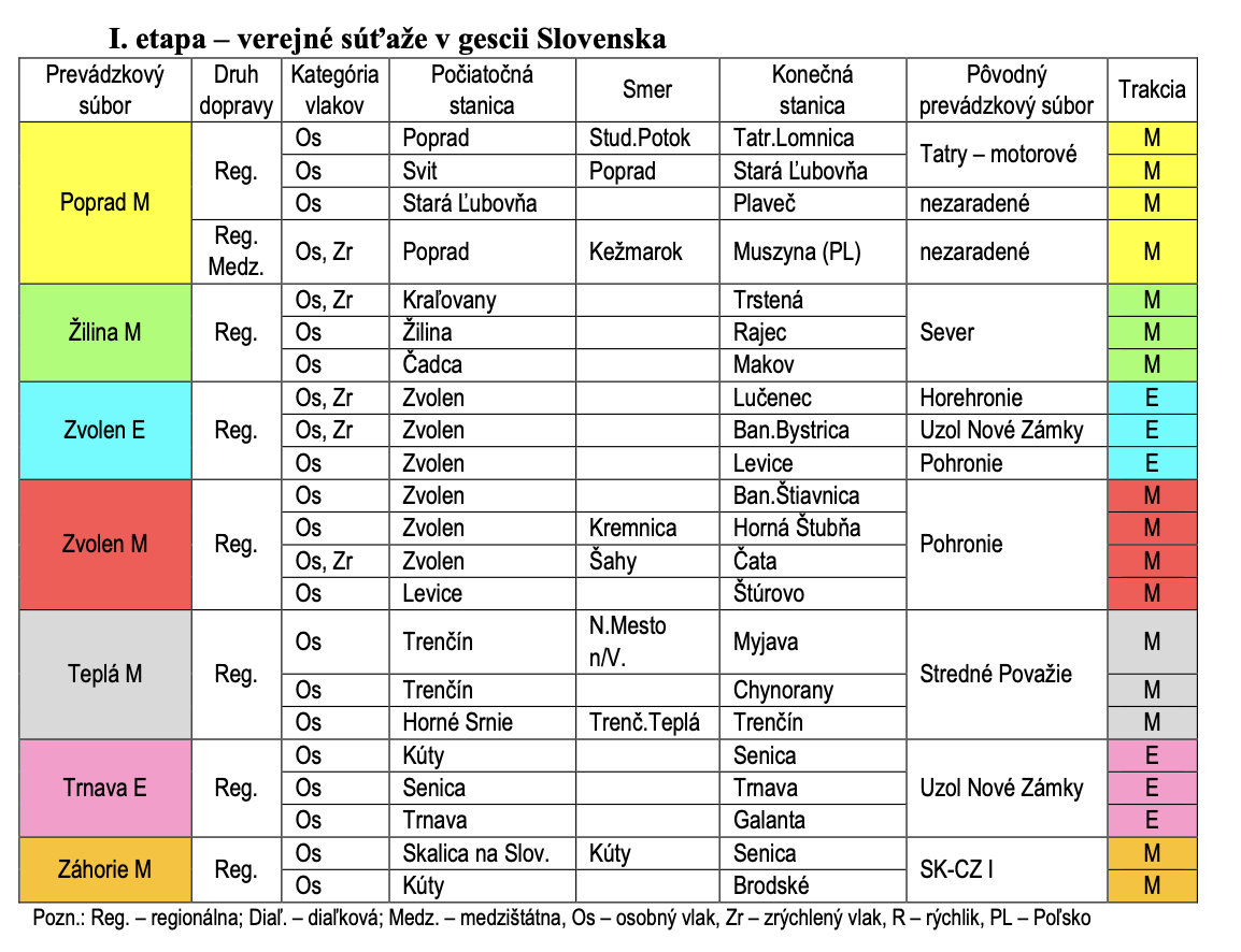 Verejné súťaže chcelo v roku 2022 vyhlásiť ministerstvo na troch tratiach – denné diaľkové vlaky z Bratislavy cez Žilinu do Košíc, nočný rýchlik z Bratislavy do Humenného a rýchlik z Bratislavy do Prievidze.