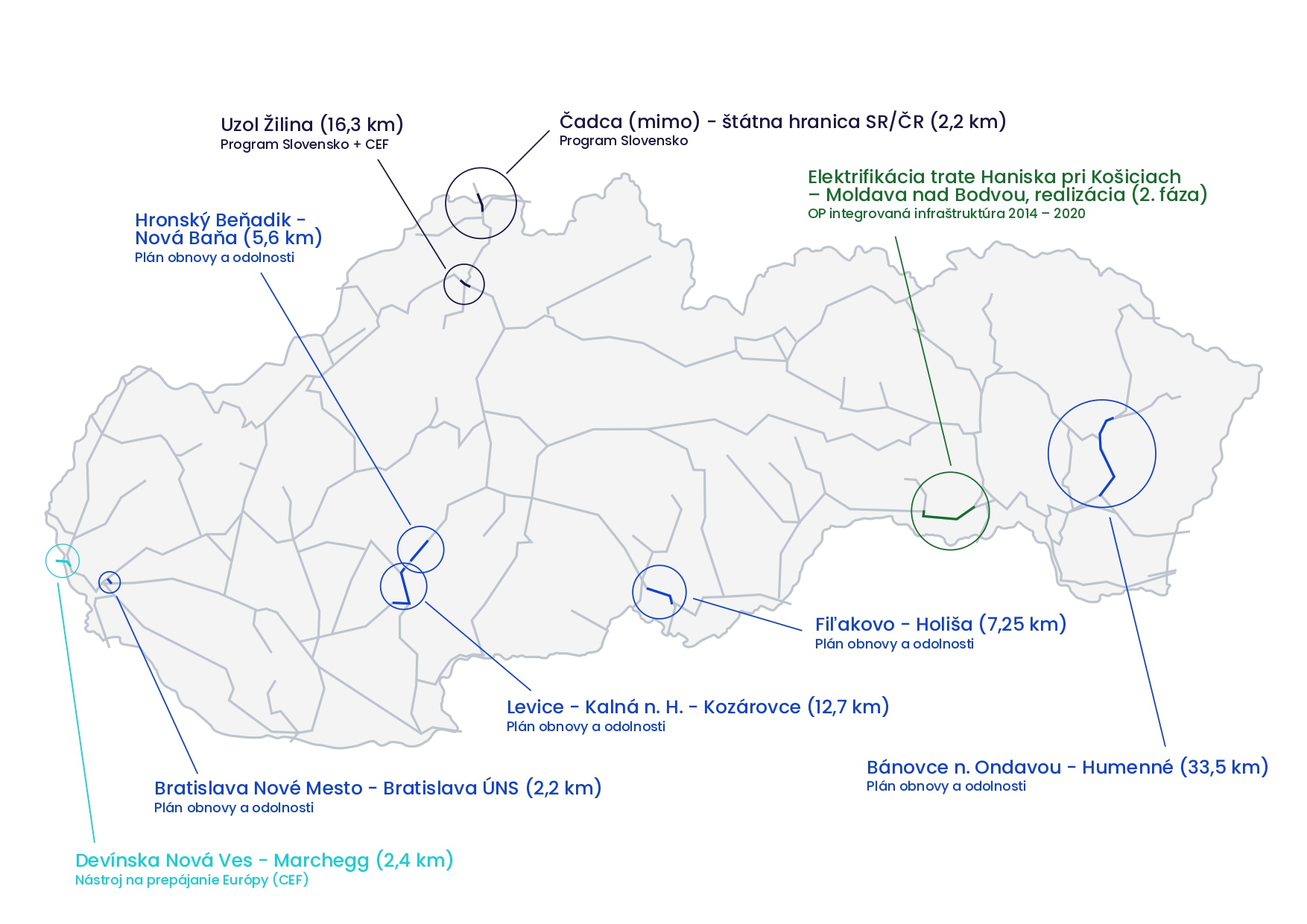 Išlo o projekty kompletnej modernizácie infraštruktúry, elektrifikácie či zvýšenia priepustnosti hlavných tratí.