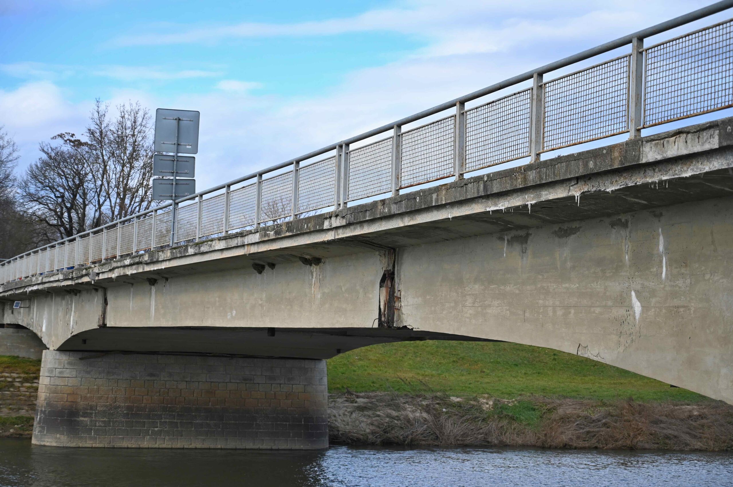 „Odhalila vážne statické poruchy nosnej konštrukcie v druhom poli mosta, najmä havarijný stav železobetónových ozubov, priečnikov a výskyt šikmých šmykových trhlín,“ pokračuje župa.