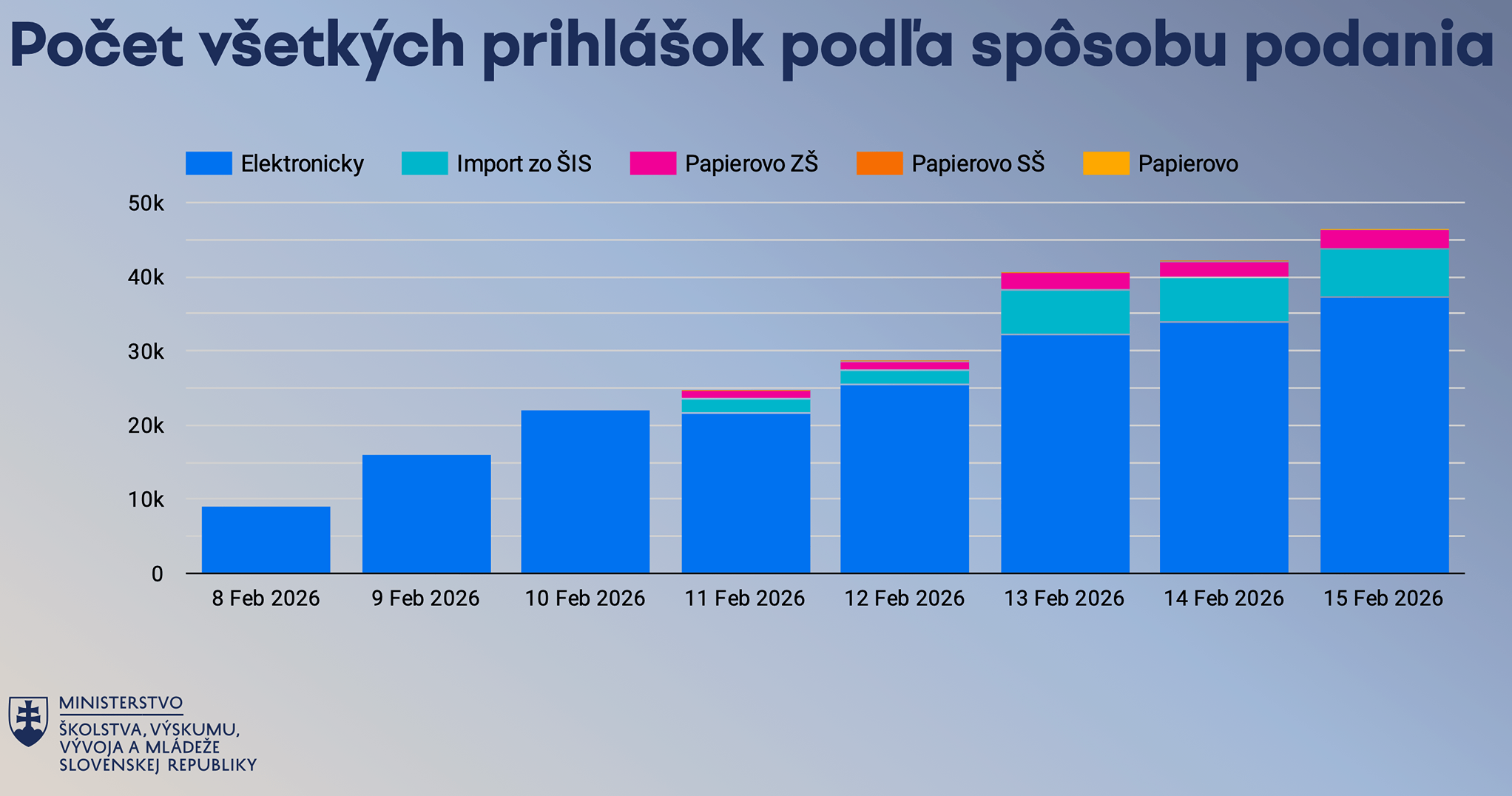 „Už takmer 47-tisíc vyplnení prebehlo digitálne a papierové prihlášky tvoria len malé percento. Ide o zásadný krok k férovejšiemu a prehľadnejšiemu prijímaciemu procesu,“ uviedol rezort školstva.