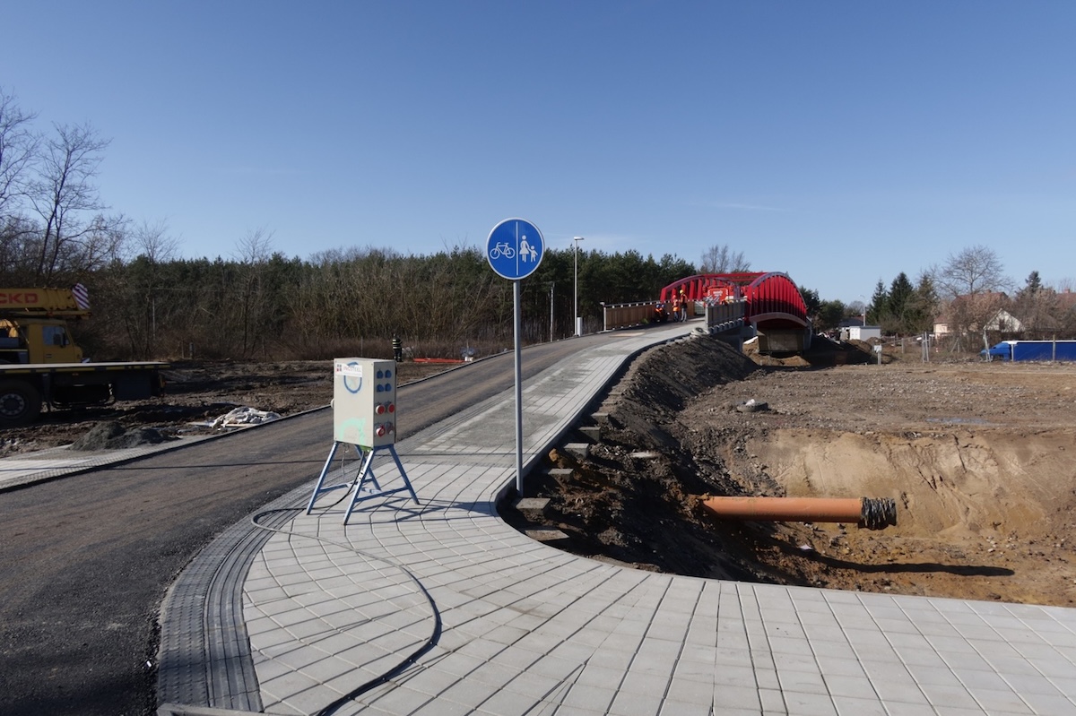 V okolí cyklolávky podľa BSK pokračujú aj súvisiace úpravy na prístupových ramenách. Viditeľné sú nové spevnené plochy, obrubníky, dlažba pre peších aj čerstvé asfaltové vrstvy, ktoré majú zabezpečiť plynulé napojenie na existujúce komunikácie.