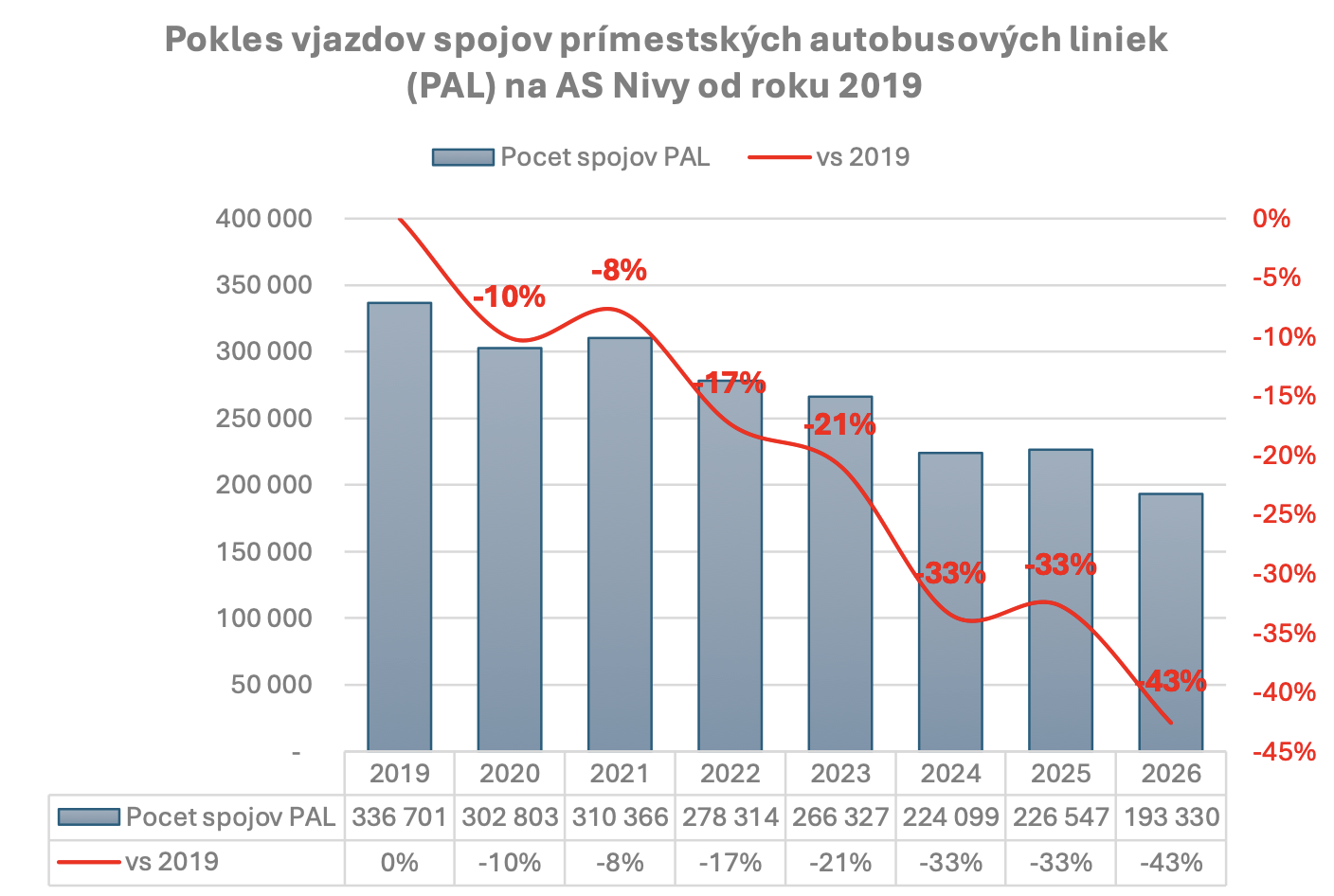 Časť doterajších priestorov stanice o niekoľko mesiacov nahradia ďalšie obchodné prevádzky. Kraj odklonenie regionálnych autobusov odôvodňuje aj zvyšujúcimi sa poplatkami za vjazd a výjazd. Tie medzi rokmi 2021 a 2026 stúpli o 56 percent, z vyše 13 na skoro 21 eur.