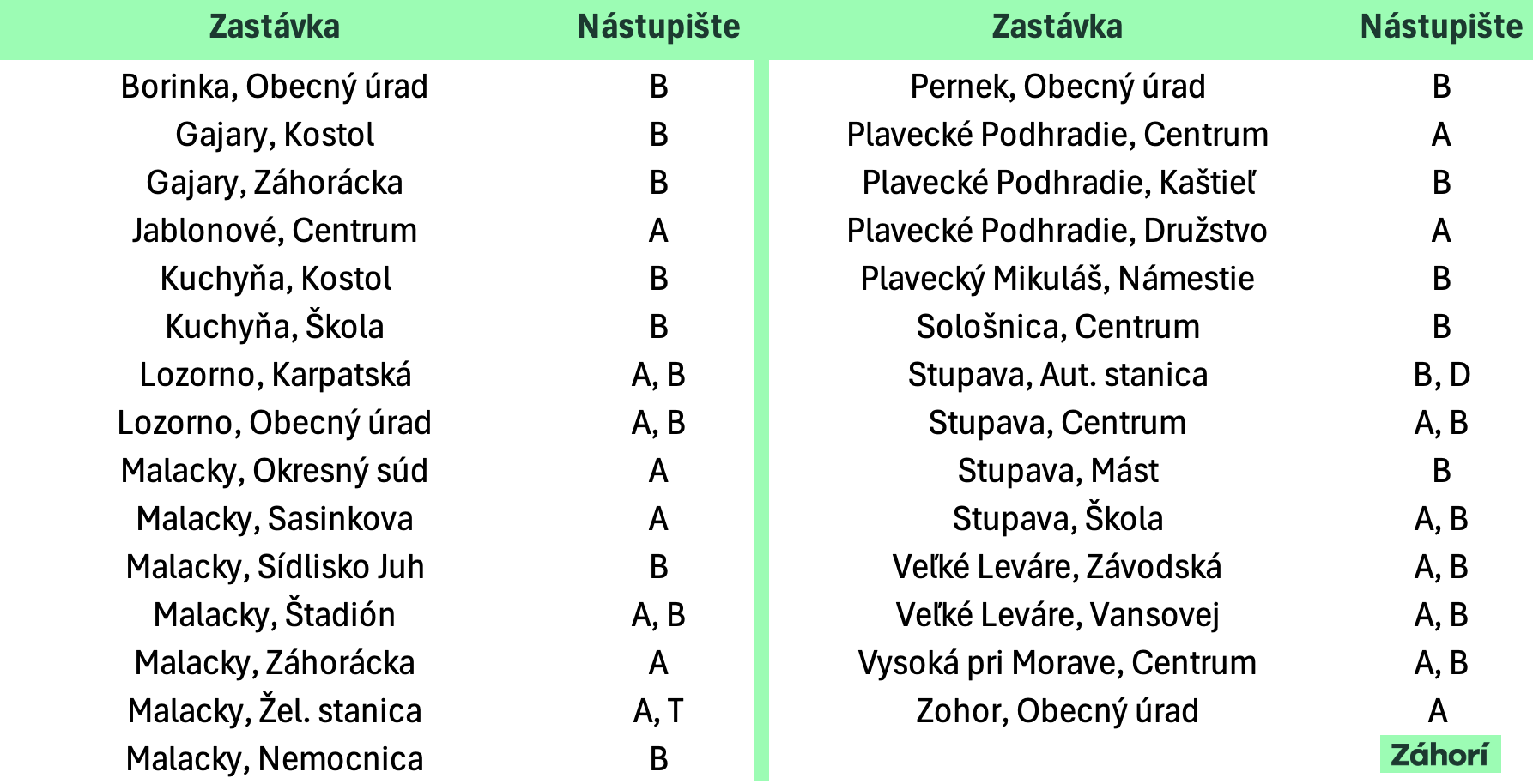 Z celkového počtu 133 elektronických tabúľ pribudne 39 na Záhorí. Redakcia má k dispozícii konkrétny zoznam zastávok a nástupíšť. Či budú odchodové tabule aj na tej vašej, si môžete pozrieť v priloženej grafike nižšie.