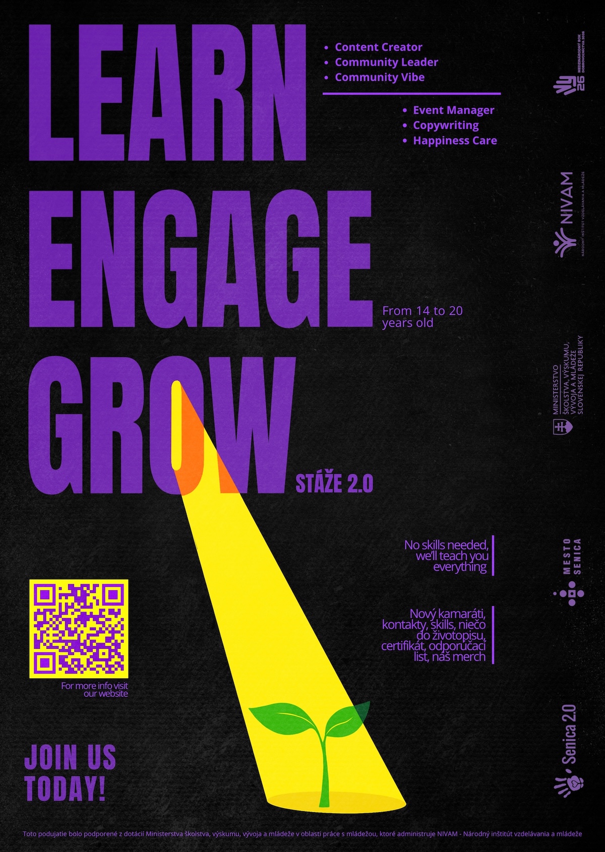 Občianske združenie Senica 2.0 spustilo nový program Stáže 2.0, určený pre mladých ľudí vo veku od 14 do 20 rokov. Zameraný je na získanie praktických skúseností v oblastiach, ktoré presahujú bežné brigády a môžu mladým pomôcť pri ďalšom štúdiu aj budúcom uplatnení.