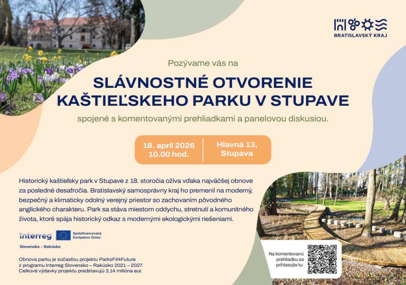 Historický kaštieľsky park v Stupave po rozsiahlej revitalizácii slávnostne otvoria v sobotu 18. apríla o 10.00 h. Informoval o tom Bratislavský samosprávny kraj (BSK).