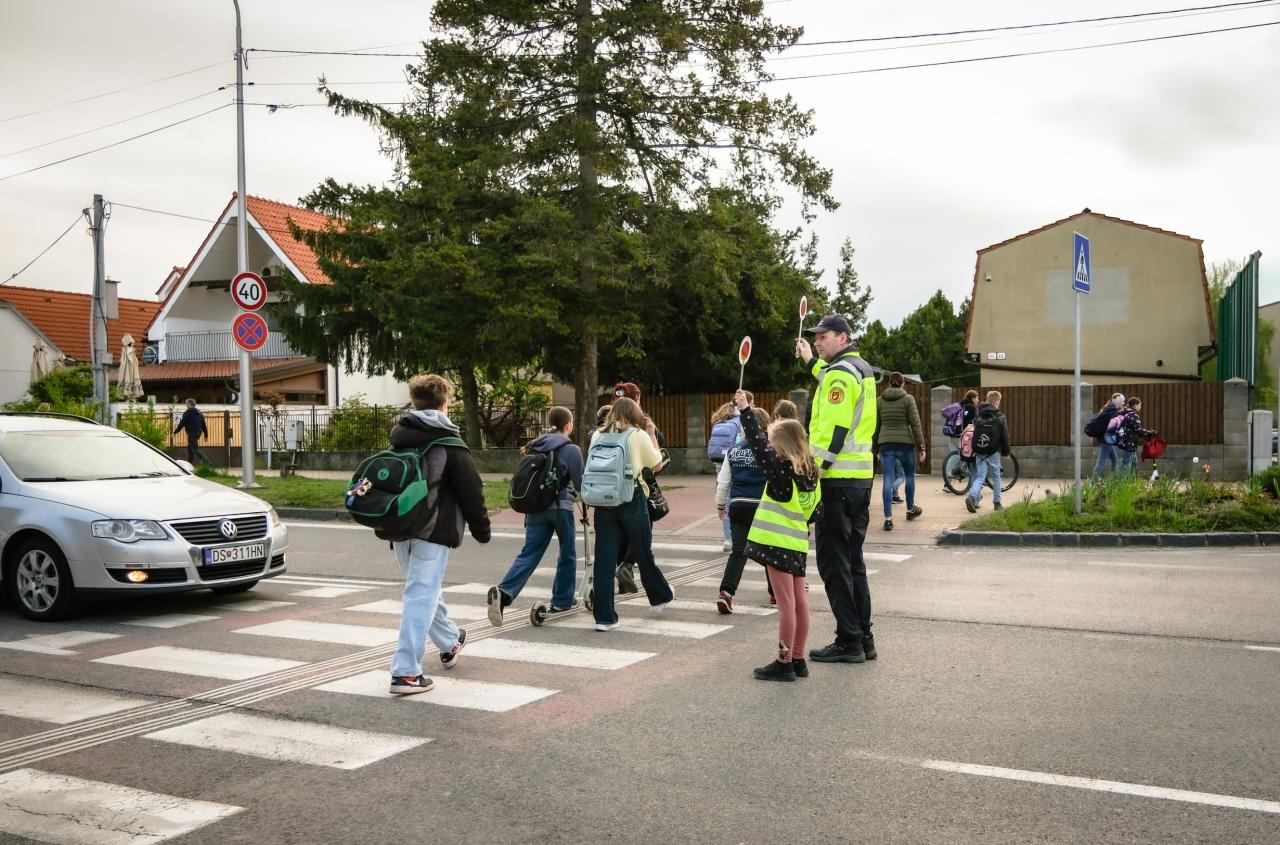 V prvej časti si žiaci spolu s príslušníkmi mestskej polície vyskúšali usmerňovanie dopravy a dohliadali na bezpečné prechádzanie chodcov cez priechod pre chodcov. Aktivita im mala ukázať význam dodržiavania pravidiel cestnej premávky v každodennom živote.